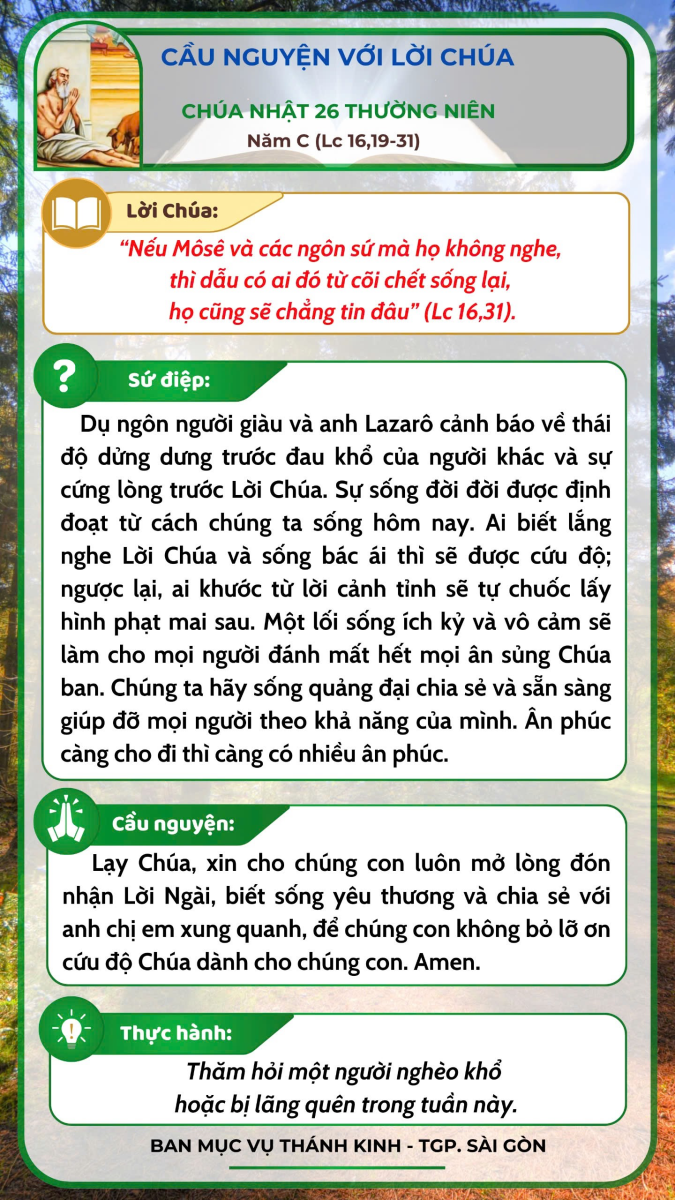 Cầu nguyện với Lời Chúa - Chúa Nhật tuần 26 thường niên - Năm C