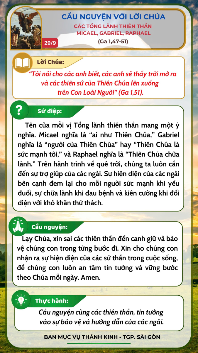 Cầu nguyện với Lời Chúa - Lễ kính các Tổng lãnh Thiên thần Michael, Raphael và Gabriel
