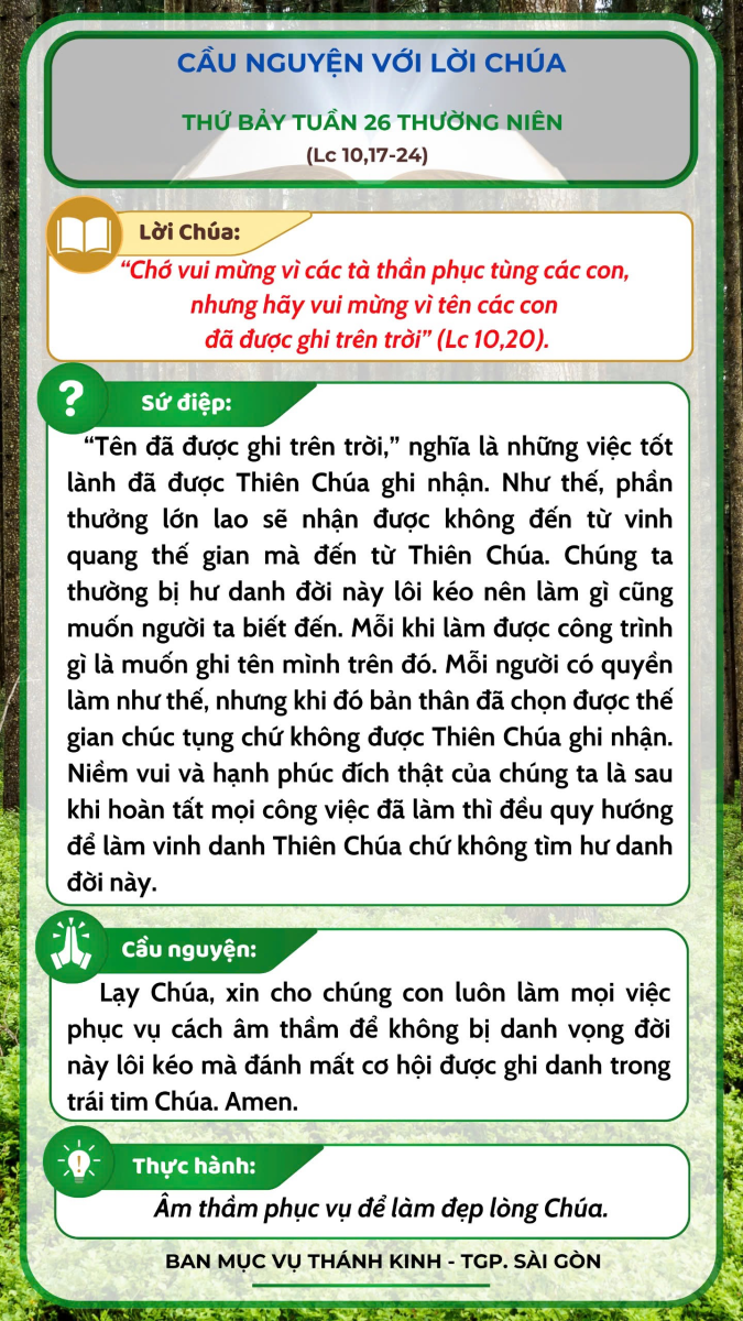Cầu nguyện với Lời Chúa - Thứ Bảy tuần 26 thường niên